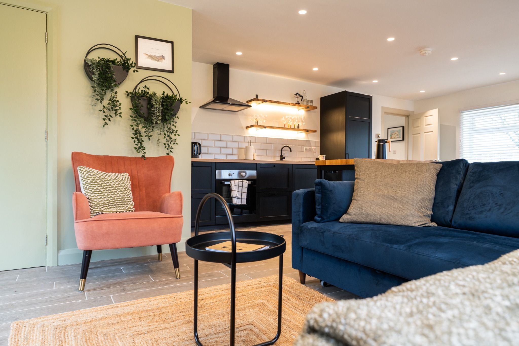 We created a Scandi inspired, open plan, multi-functional space. Complete with all the comforts of home including a wood burning stove to cosy up to after an evening under the stars in the hot tub.